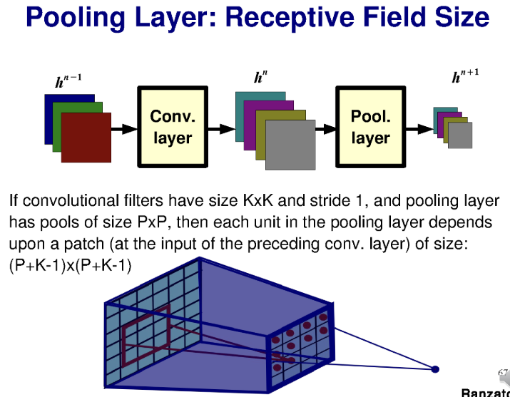 Receptive Field : 풀링 층의 각 출력은 이전 컨볼루션 레이어의 필터 크기에 영향을 받는다.