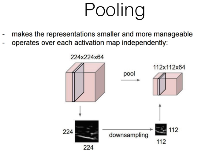 Pooling : 풀링을 한마디로 표현하자면, 특징 맵의 특징 맵이라고 할 수 있다. 다운샘플링을 통해 특징 맵의 용량을 줄이고, 각 특징맵을 다시 쌓아올려 만드는 과정이다.