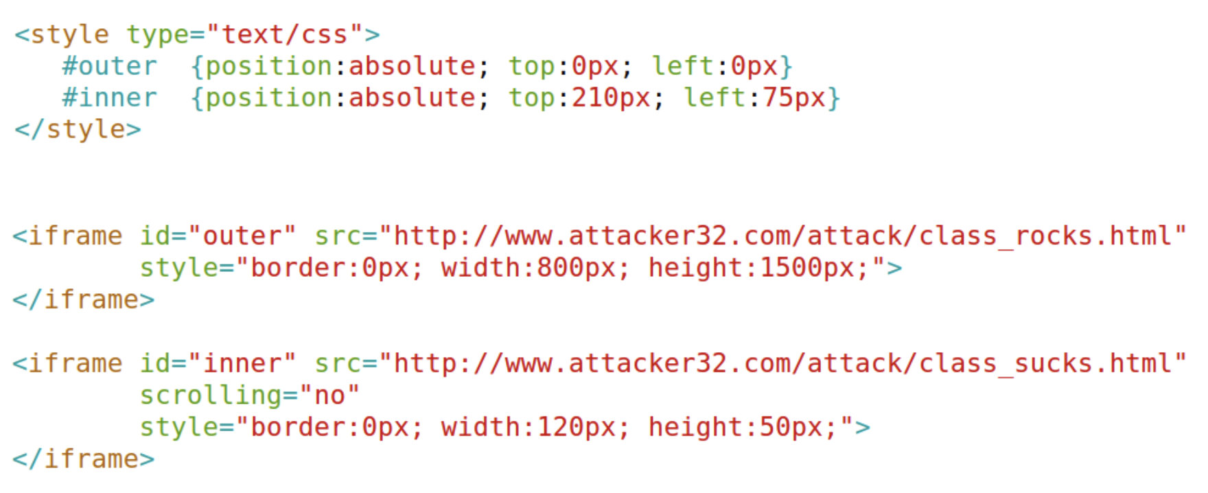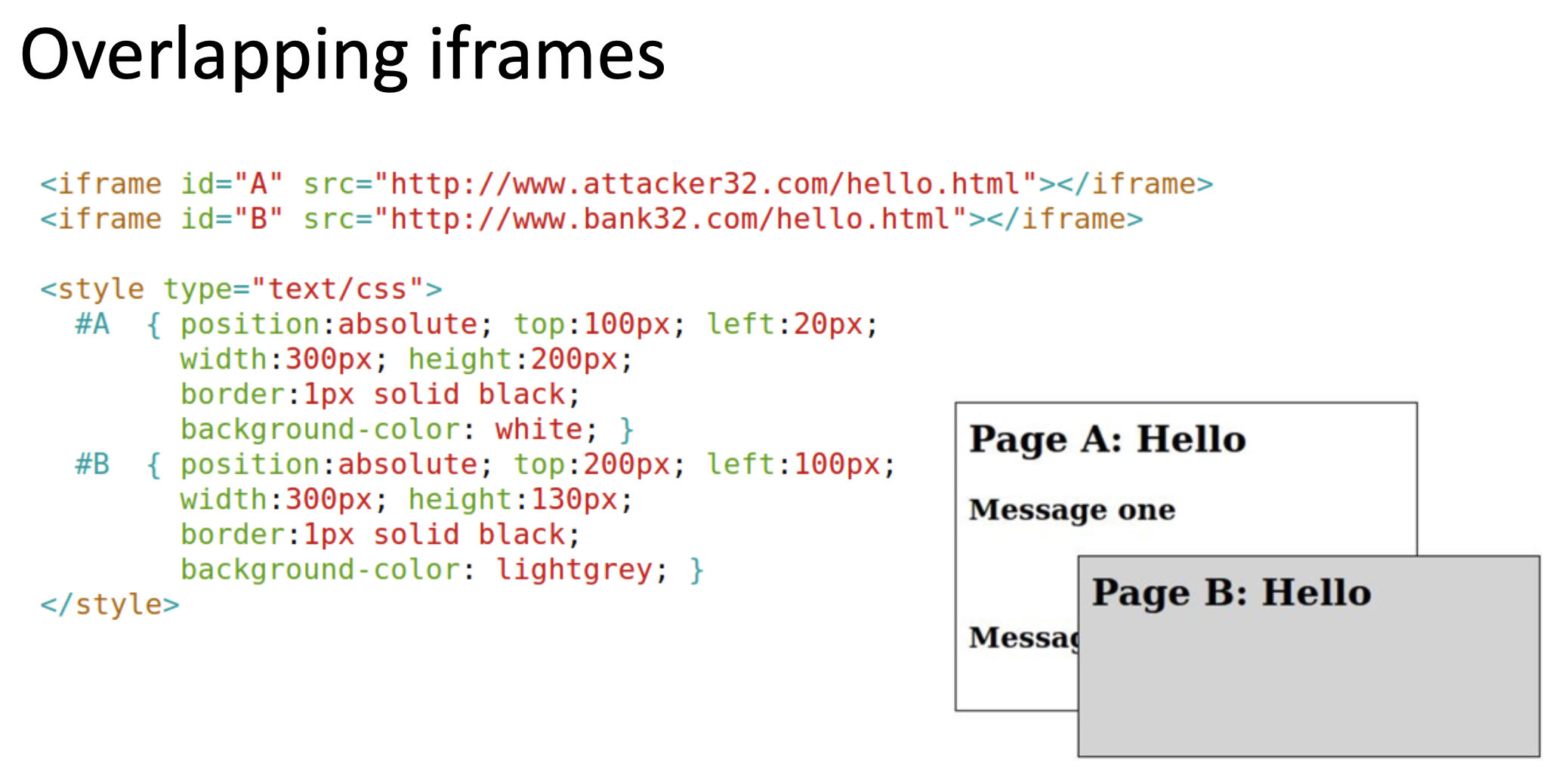 클릭재킹은 악의적으로 iframe을 숨겨 사용자가 의도하지 클릭을 수행하도록 유도하는 공격이다.