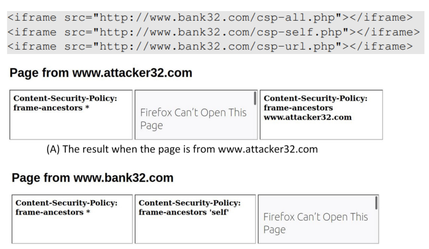 만일 공격자가 위와 같이 2중으로 ifame을 구성할 경우, 프레임 버스팅 코드로 top.location을 수정하지 못하게 됨.