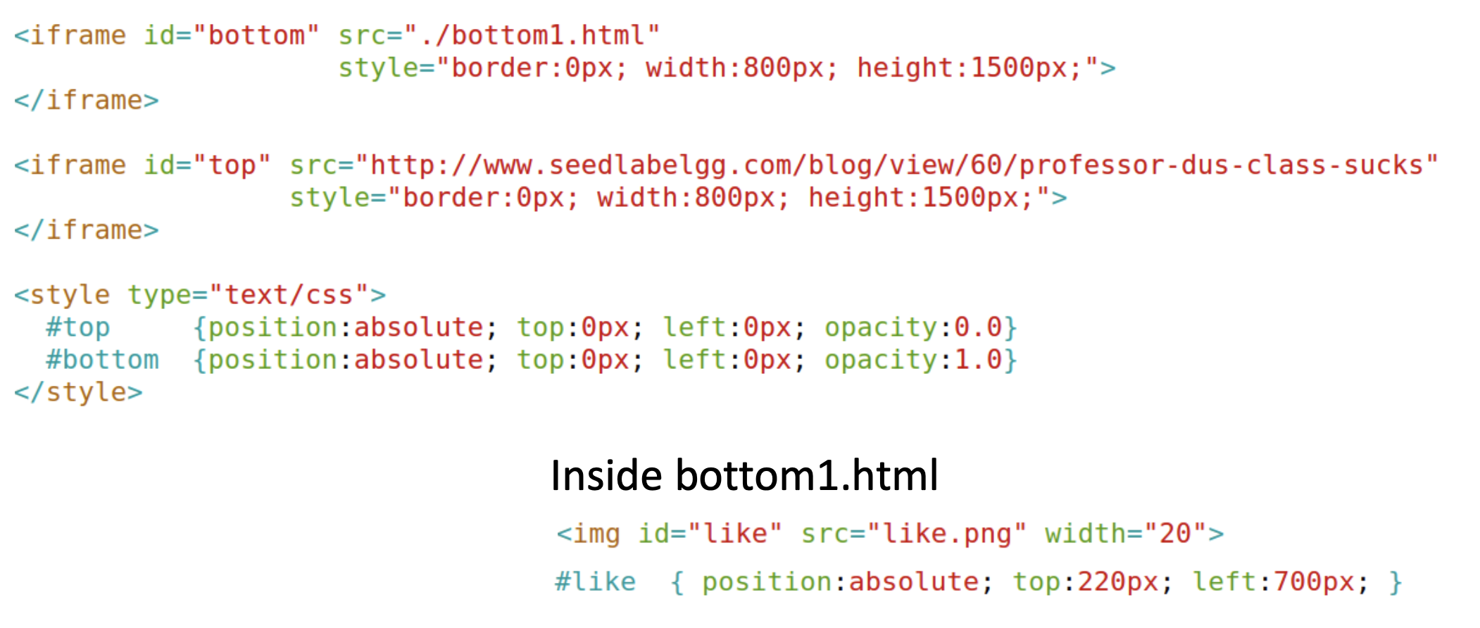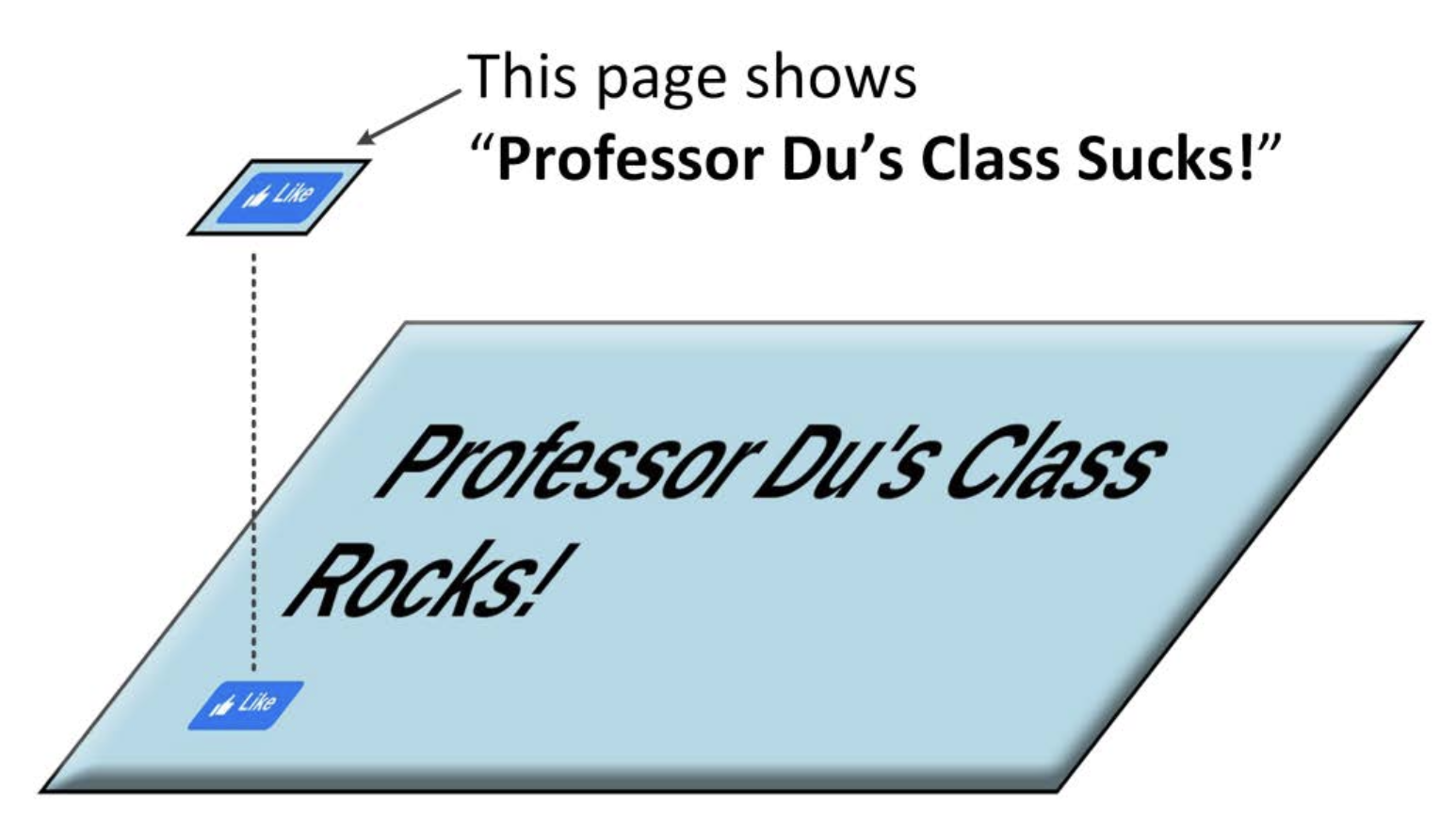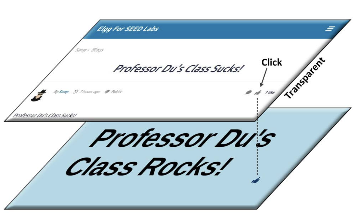 사용자는 Like 버튼을 클릭하는 것으로 인식하지만, 실제로는 투명한 iframe으로 겹쳐져있는 다른 게시글의 Like를 클릭한다.