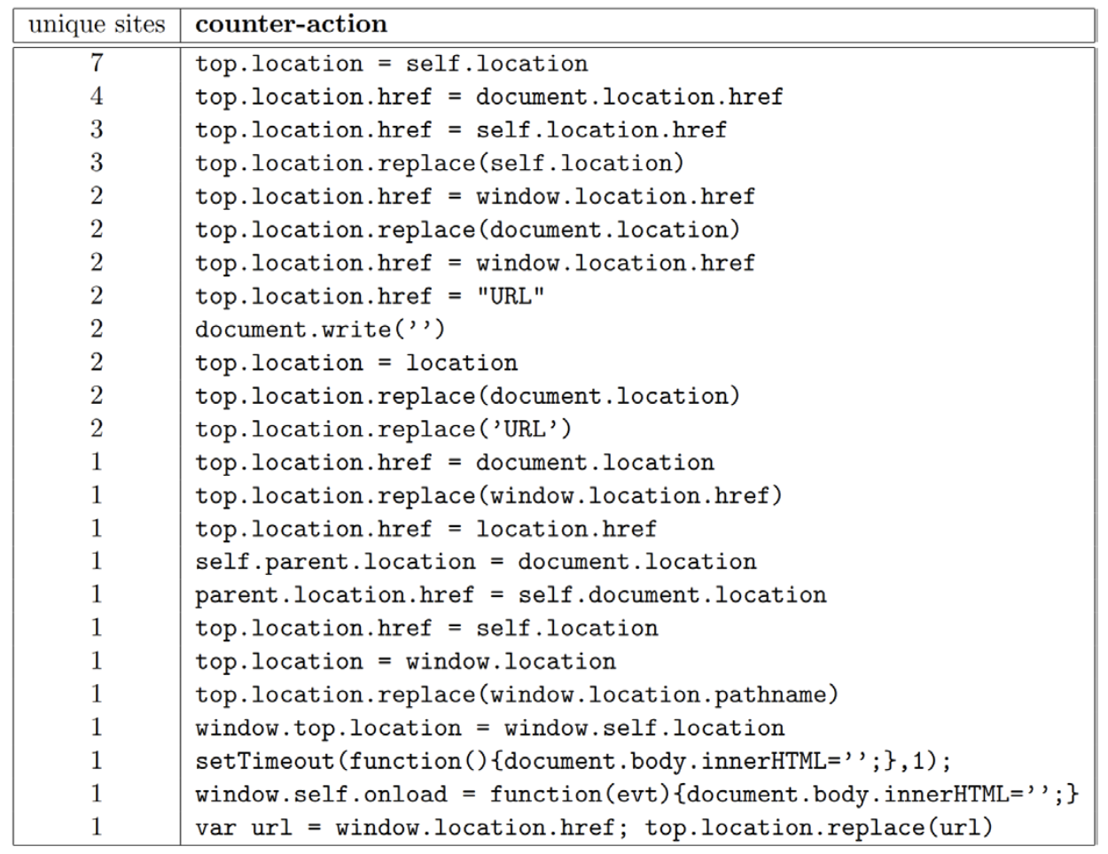 프레임 킬러/프레임 버스터는 Client-side에서 사용하는 클릭재킹 대응책이므로, 여러가지 방식으로 이를 회피할 수 있다.