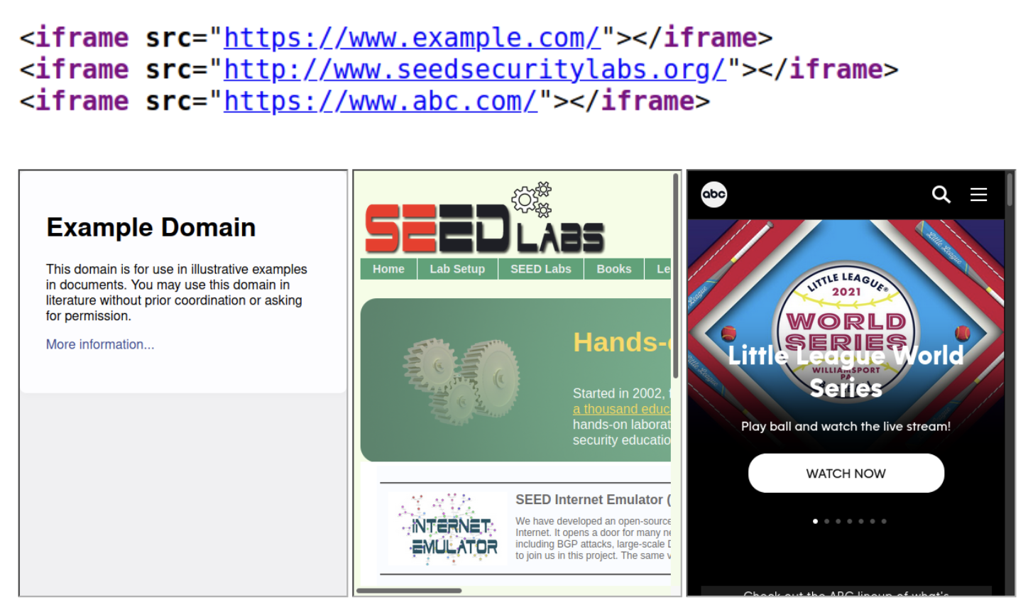은 다른 출처의 웹사이트를 페이지 내에 삽입할 때 흔하게 사용된다.