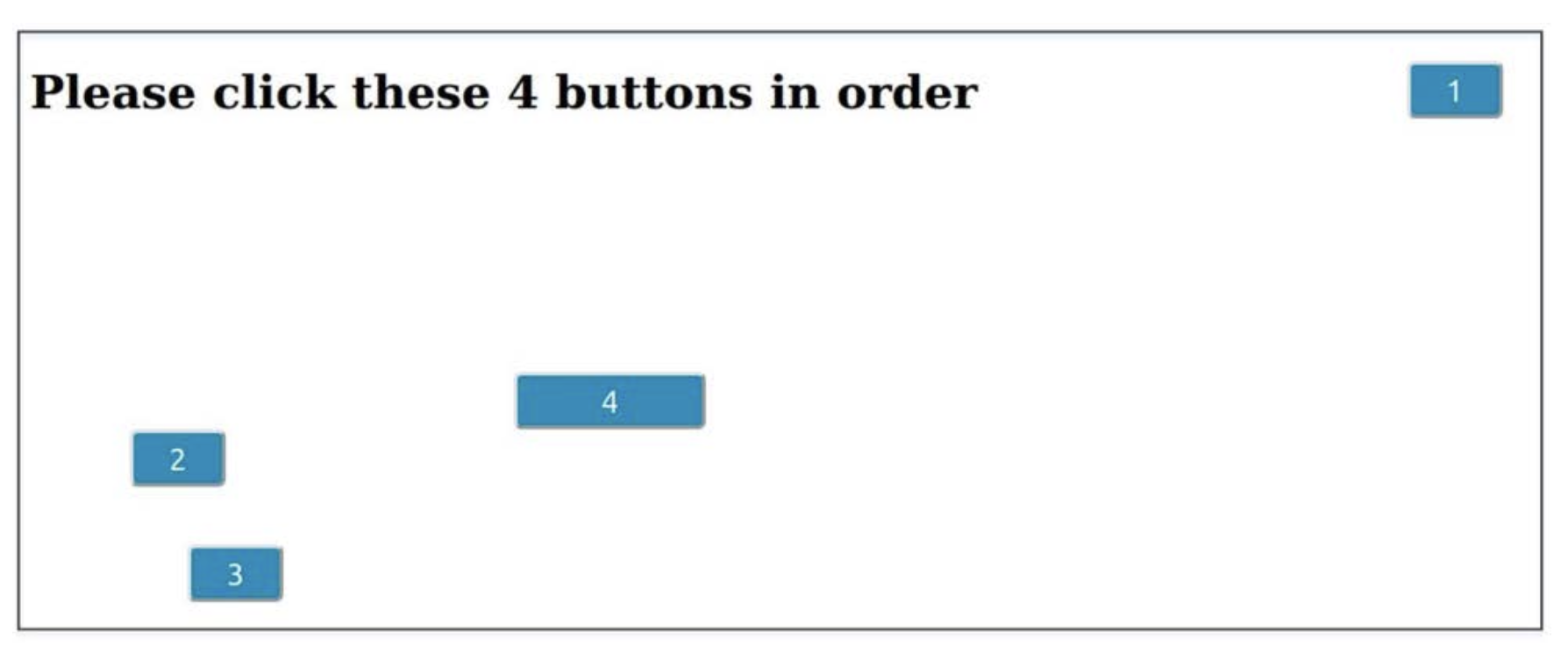 사용자에게 버튼을 순서대로 클릭하도록 하는 단순한 미니게임처럼 보이지만, 실제로는 각 버튼에 다른 클릭 재킹이 포함되어있을 수 있다.
