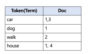 인덱스가 만들어지면 저렇게 어떤 텍스트를 어떤 document가 포함하고 있는 지를 테이블 형태로 바로 알 수 있게 된다