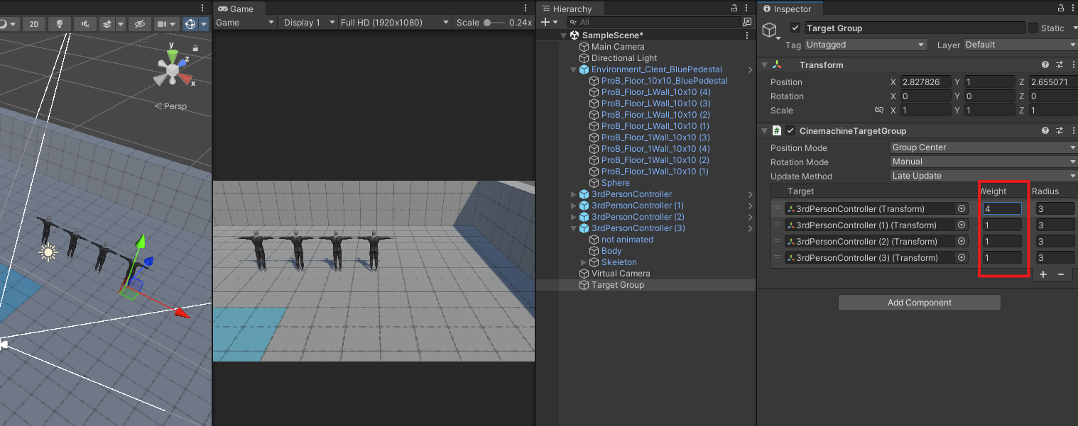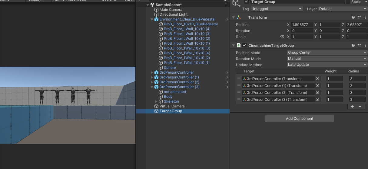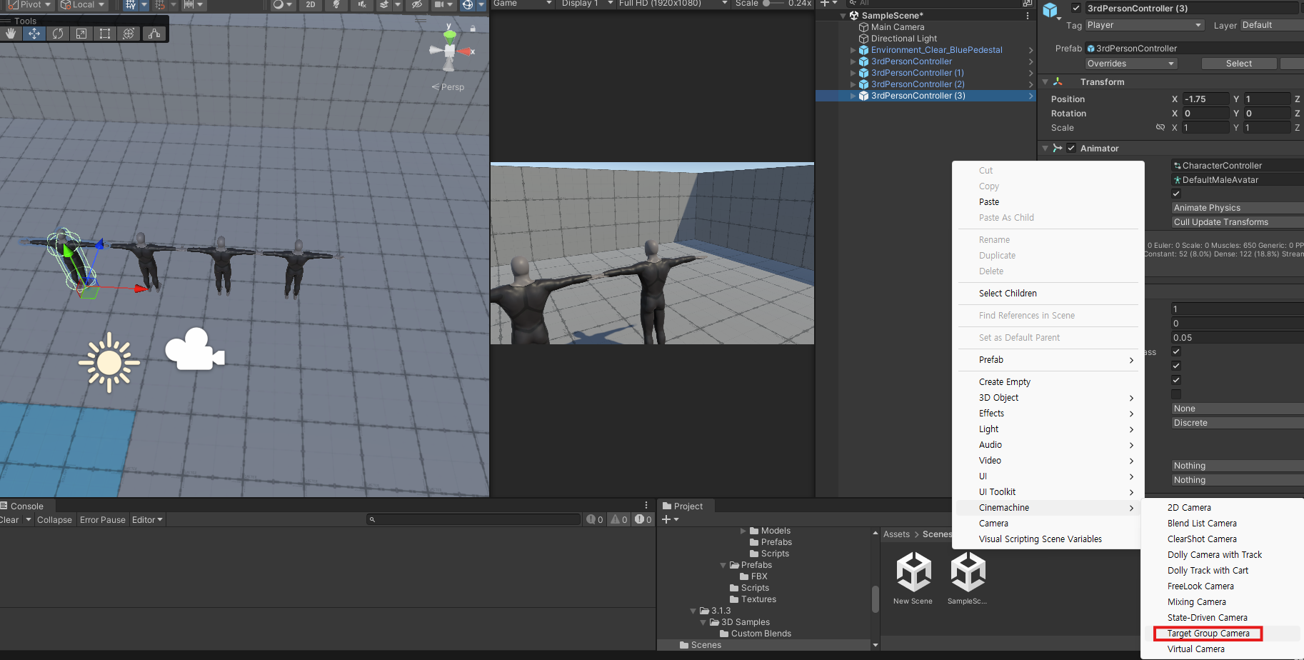 타겟 그룹을 설정하기 위해 플레이어 수를 늘리고, 타겟 그룹 카메라를 만들어 보자.