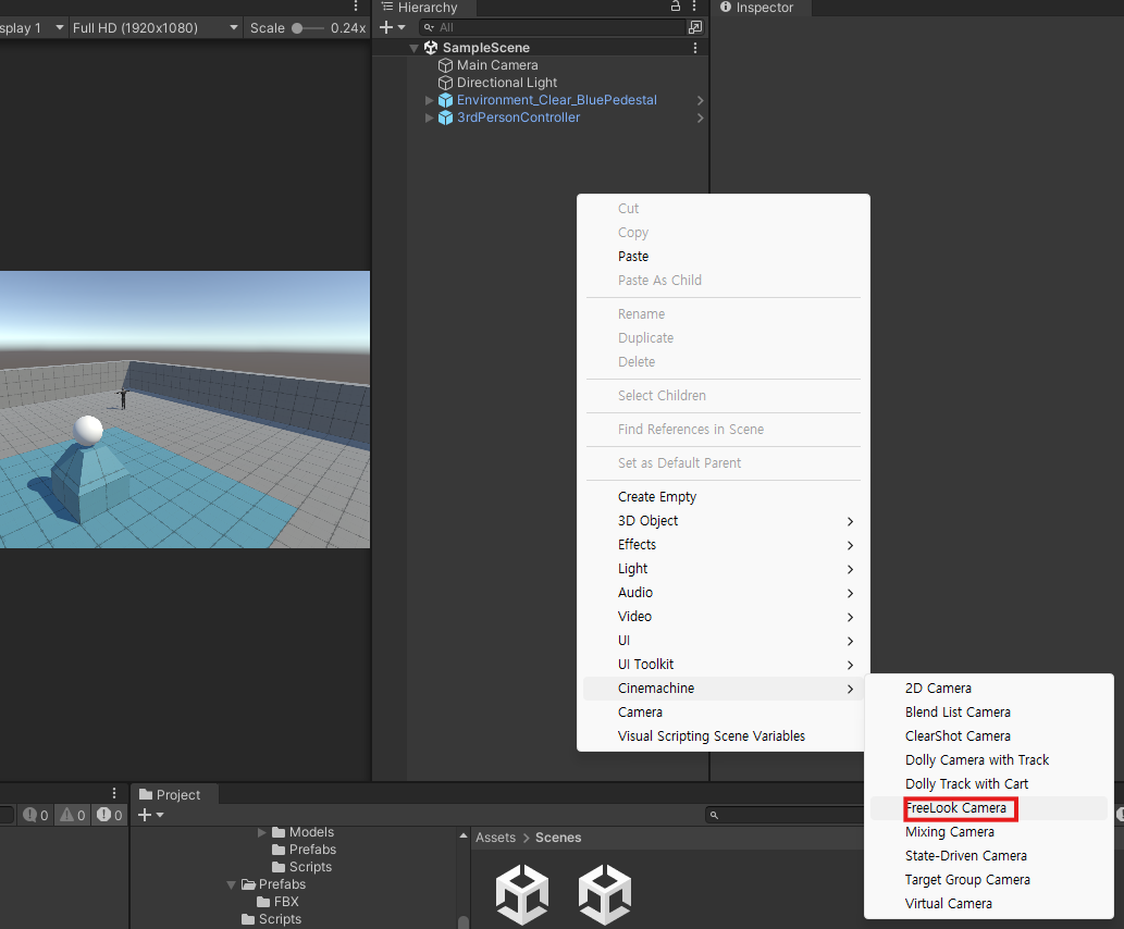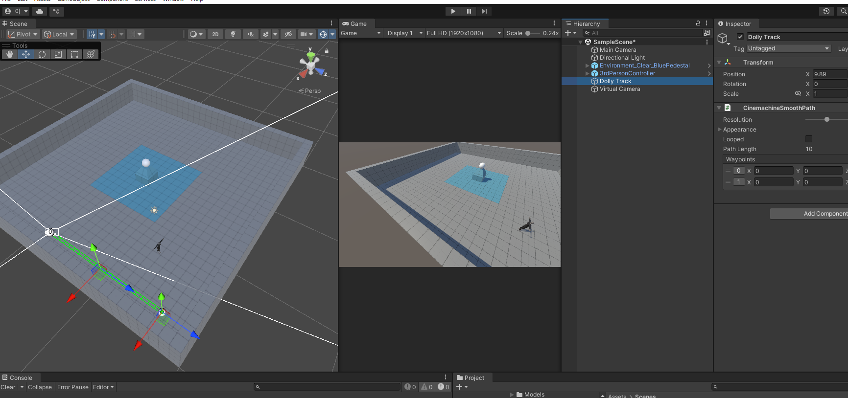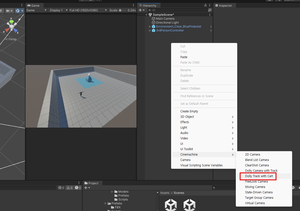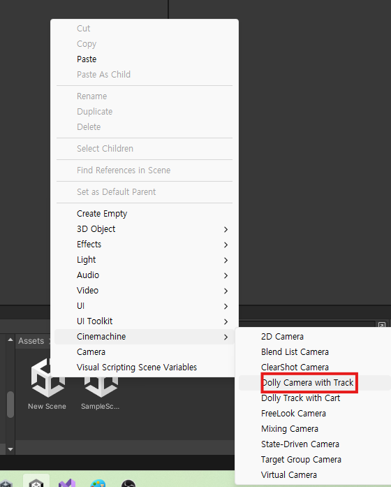 우선 Dolly Track with Cart를 생성하고 가상 카메라를 생성해주자.