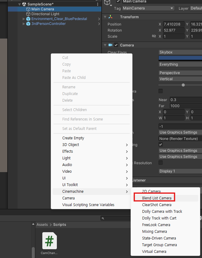 이제 이 가상카메라를 전환하기 위한 스크립트를 작성해보고자 한다.
