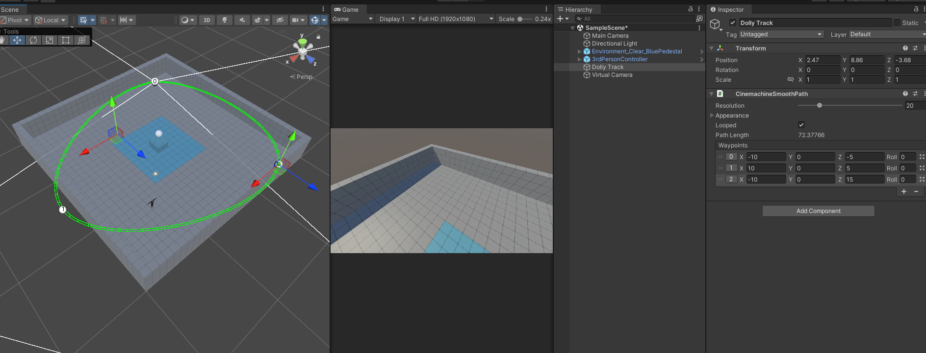 Dolly Track에서 경로를 설정하여 만들어보자. 이와 같이 원형 트랙도 만들 수 있다.