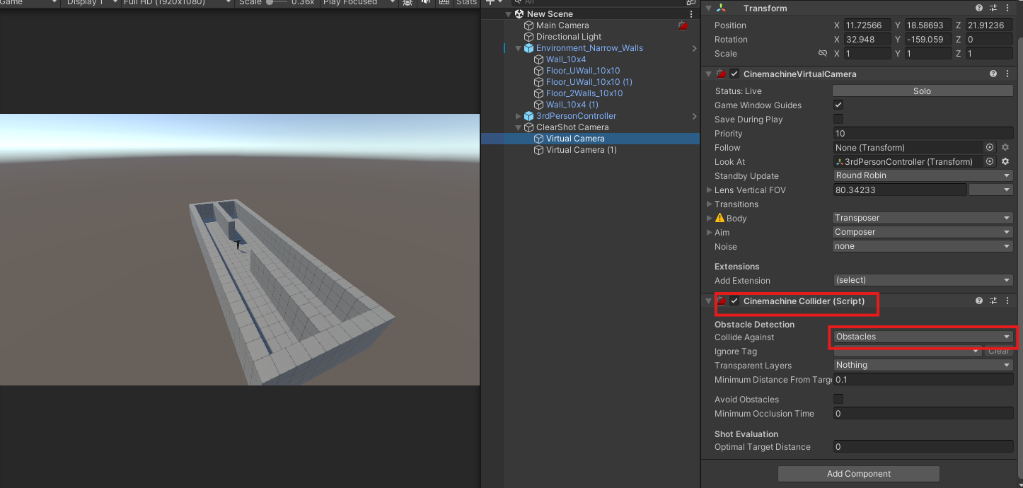 다만 사용 시 유의해야 할 점은, 장애물에 Layer 설정이 안 되어 있거나 카메라가 처음부터 시야가 가려져 있을 경우 제대로 작동하지 않을 수 있다.