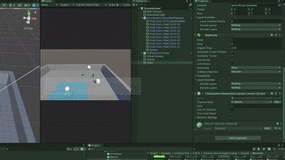 또한 이런 Cinemachine Inpulse Listener는 오브젝트에도 설정할 수 있으며, Rigidbody와 Cinemachine Independent Impulse Listener를 추가하여 만들수 있다. 이는 생동감 있는 시네마틱 장면을 만드는 데 도움을 줄 수 있다.