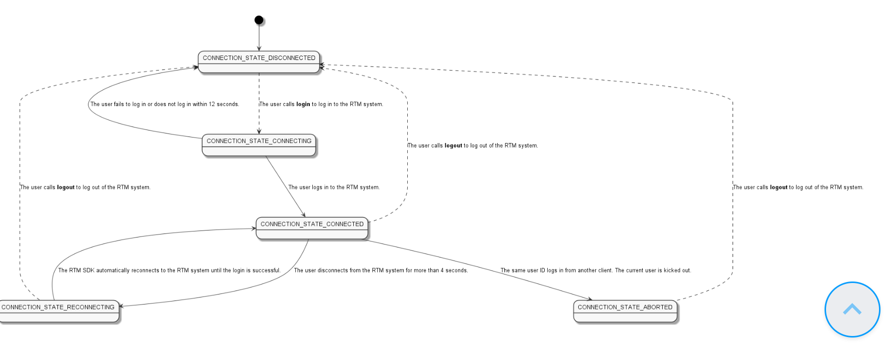 재연결(RECONNECTING)에 계속 실패할 경우 RECONNECTING 상태로 유지가 되는데 로그아웃을 호출하여 먼저 시스템에서 로그아웃을 할 수 있습니다. 다시 적절한 방법으로 시스템에 로그인할 수 있습니다.