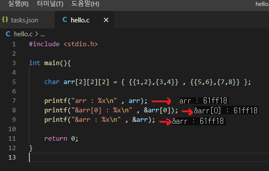 컴파일러는 &arr과 arr이라는 코드를 어떻게 받아들이며 해당 코드를 어떤 값으로 처리하는 것 일까?