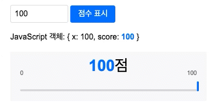 객체: { x: 50, score: 0 } 에서 x와 score의 값을 변화시키는 것을 예시로 준비했다.