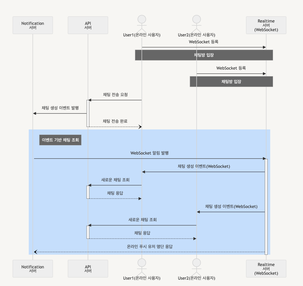 직접적인 채팅 생성이나 조회는 API-Server만을 통하고, WebSocket-Server는 새로운 채팅이 발생했다는 이벤트만 전달하는 방법으로 로직 개선