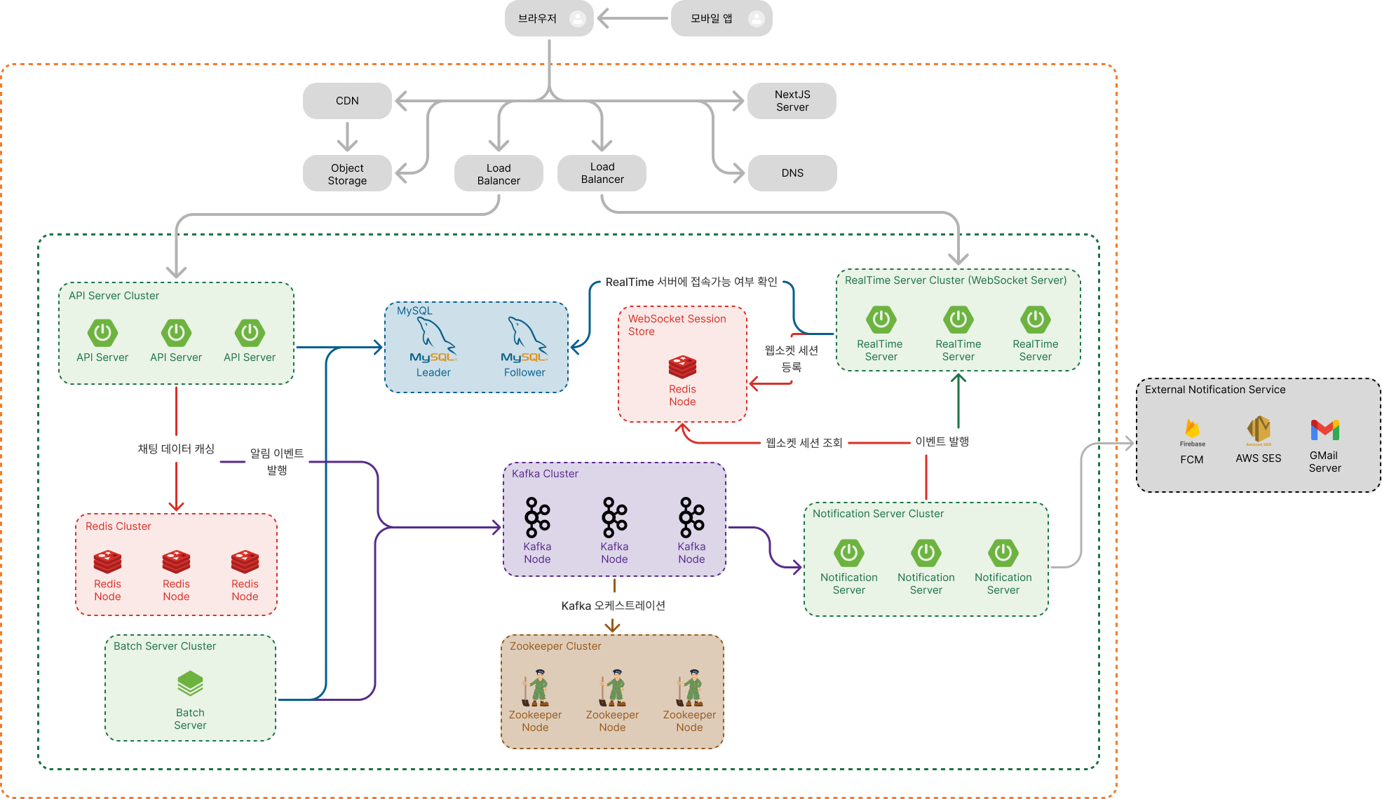또 모바일 네트워크의 특성을 고려했을 때 네트워크 환경이 좋지 않을 수 있기 때문에 재접속에 대한 로직이 탄탄해야 하는데, 개선된 구조에서는 직접적으로 WebSocket은 API 서버가 하는 역할을 보조만 하는 구조이기 때문에 이벤트를 무시하더라도 전혀 비즈니스 로직에 문제되지 않는다.