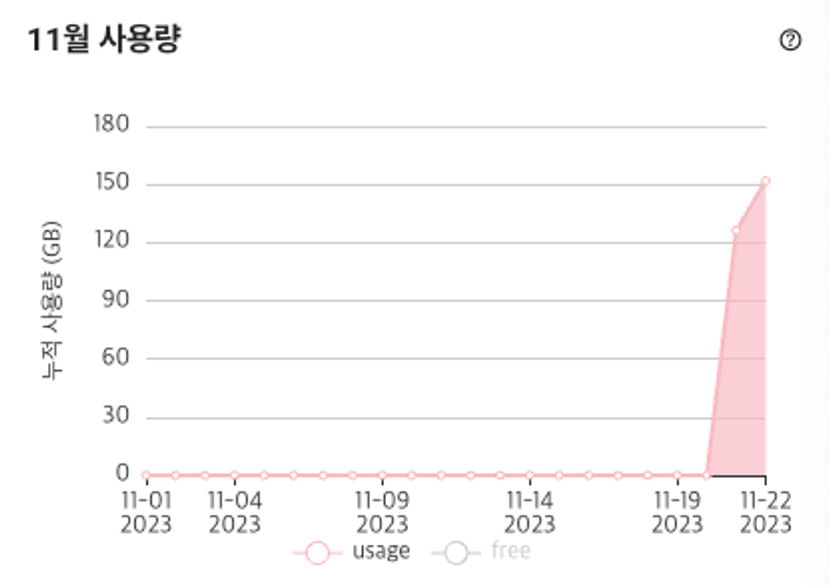 위 사진은 서버리스 테스트 중, 실수로 로직이 재귀적으로 돌게 만들어버려서 1분정도 동안 200회 정도의 다운샘플링 연산을 시켜버린 결과인데 150GB에 달하는 메모리를 썻다는 것을 알 수 있다.