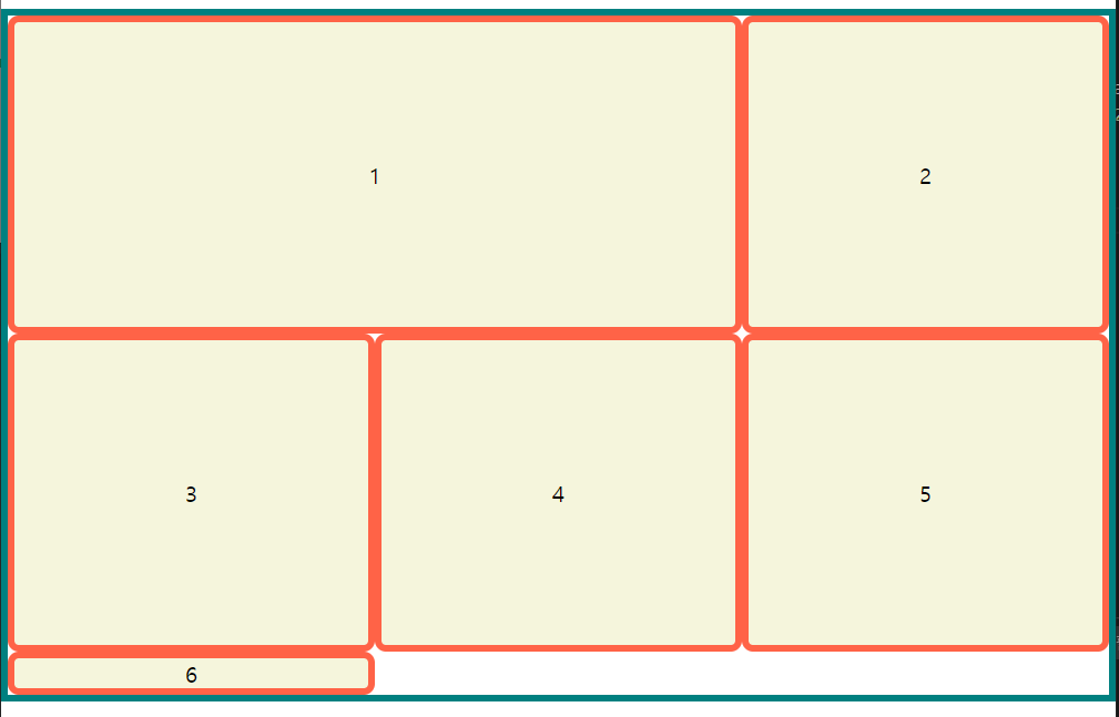 li:nth-child(1){ /*1번 요소*/ grid-clumn : 1/3; /*1~3번 열까지 차지하겠다. */ }