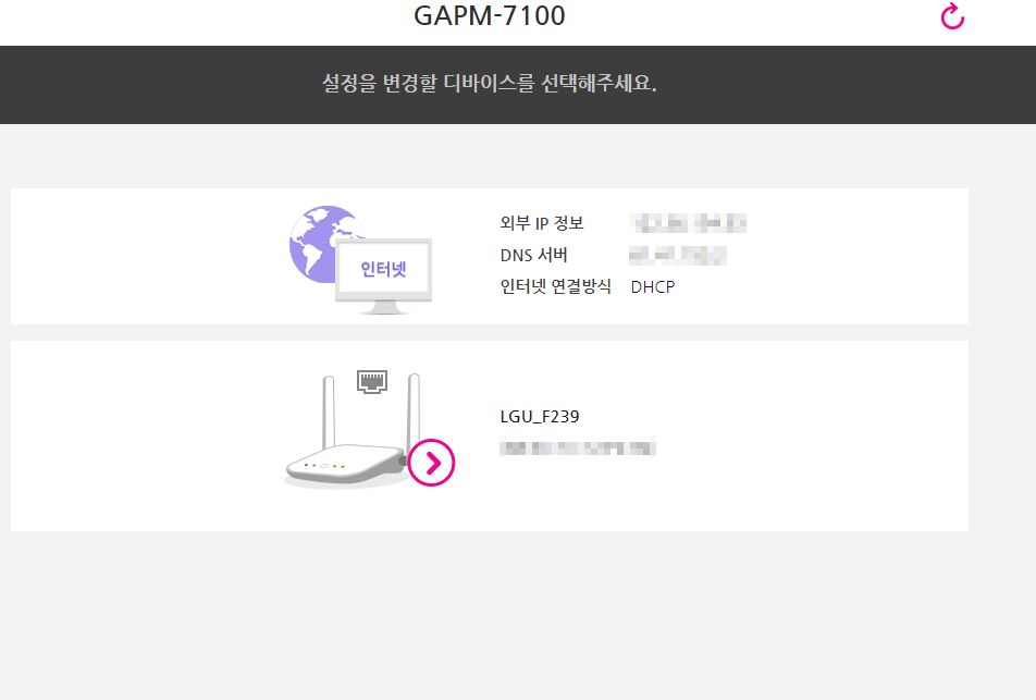 LG U+를 사용하기 때문에 이렇게 나타나고 공유기마다 다른 페이지 모양이 나타난다.