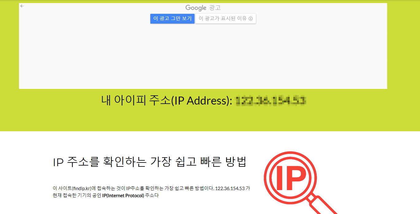 외부 ip의 경우 다음과 같은 페이지에서 쉽게 찾을 수 있다.