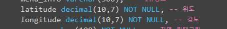 테이블을 생성할 때 위도와 경도 컬럼을 넣어주고, 관리자 글을 쓸 때 위도, 경도를 직접 입력해서 내용을 보여줄 때 그 값을 꺼내기만 하면 됐었다.