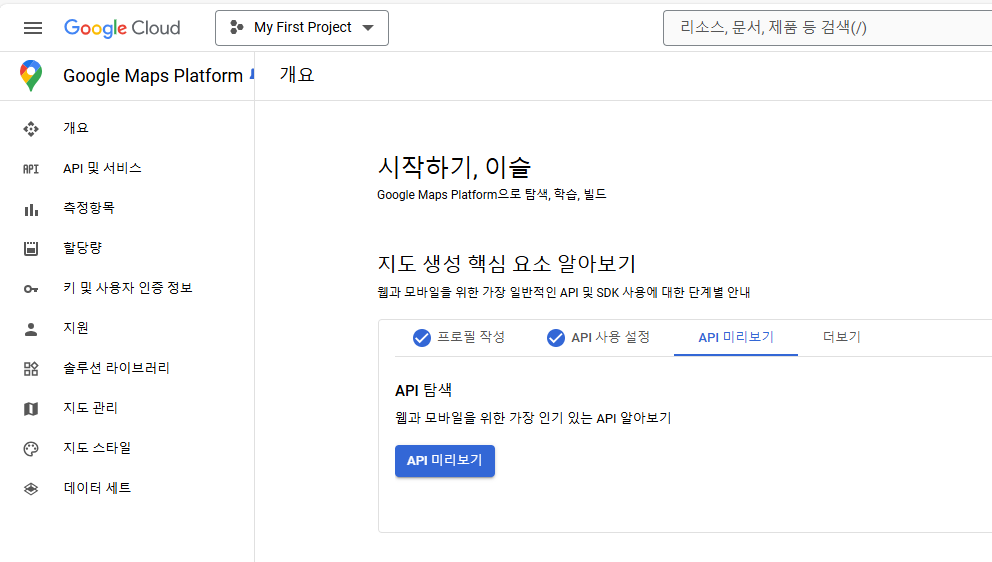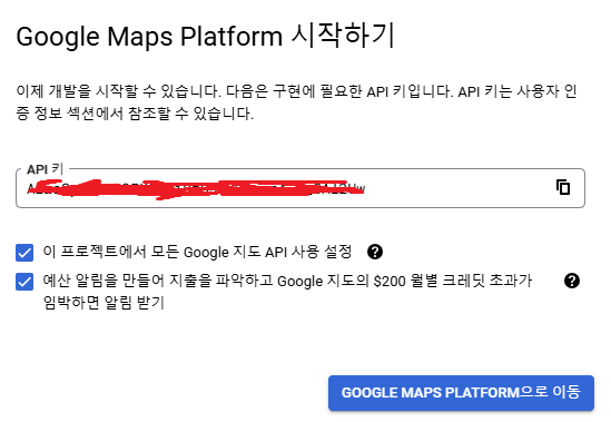 구글에서 제공하는 지도를 사용하려면 우선 회원가입을 한 뒤에 API Key를 발급 받아야 한다.
