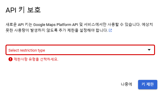 API 키가 원치 않는 곳에서 사용되지 않도록 제한 설정이 가능한데