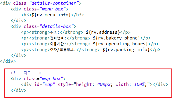 html부분에는 지도 크기만 지정을 해두고 id값을 준다.