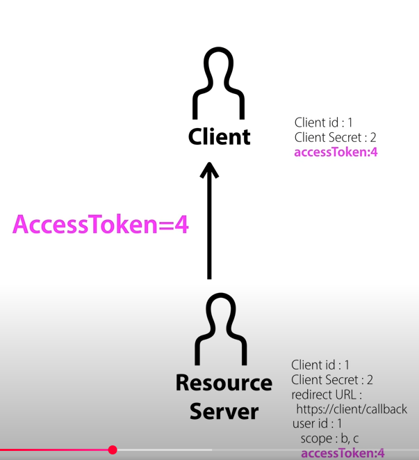 그럼 클라이언트는 엑세스 토큰을 내부적으로 저장을 하게된다. 데이터베이스나 파일같은 곳에!
