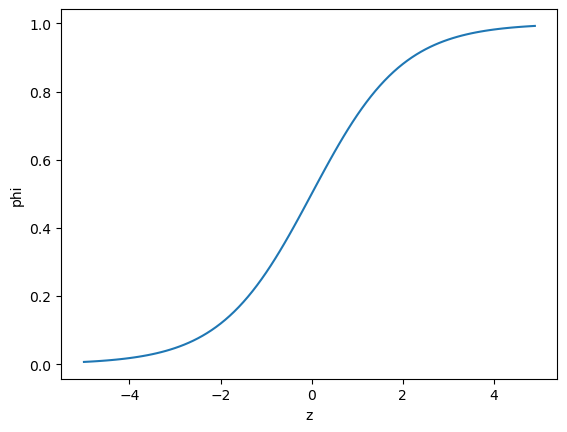 phi = 1 / (1 + np.exp(-z)) # 시그모이드 함수