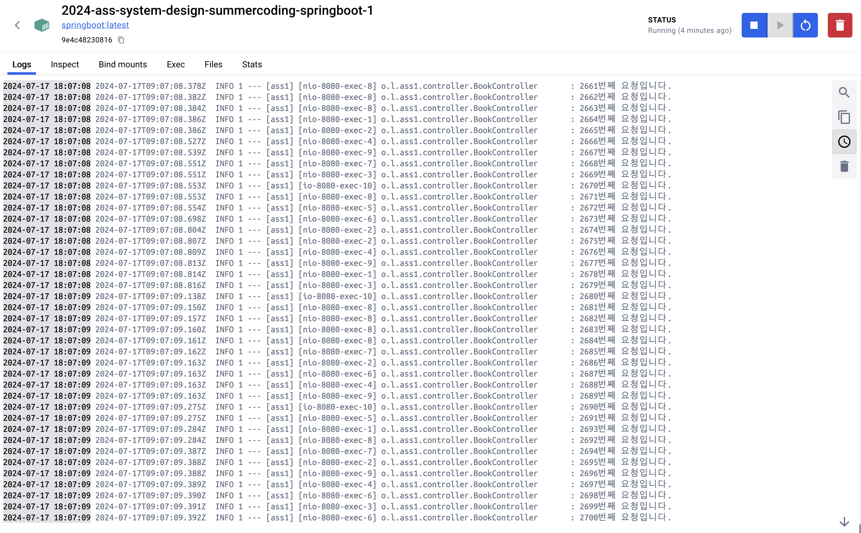 부하분산이 잘 동작하는지 확인하기 위해서 서버에서 요청 처리시 log를 남기도록 하였다.