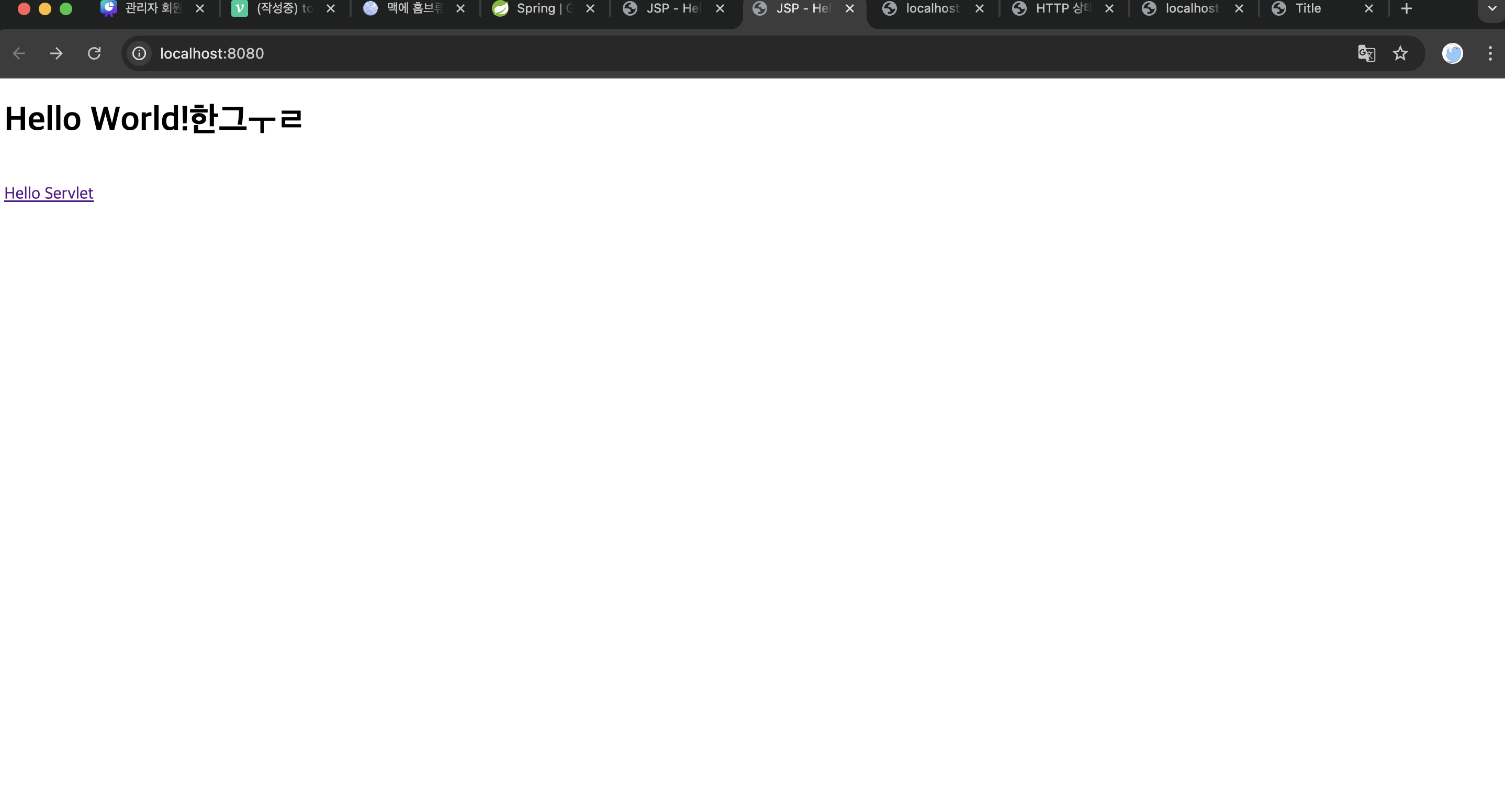 스프링 mvc 를 시작하기 전에 스프링 동작하는 서블렛 에 대해 공부해 보기로 했다. 일단 서버를 띄우기 위해 톰캣을 설치하고 intellij와 연동하여 8080 서버를 띄워보는것을 목표로 했다.