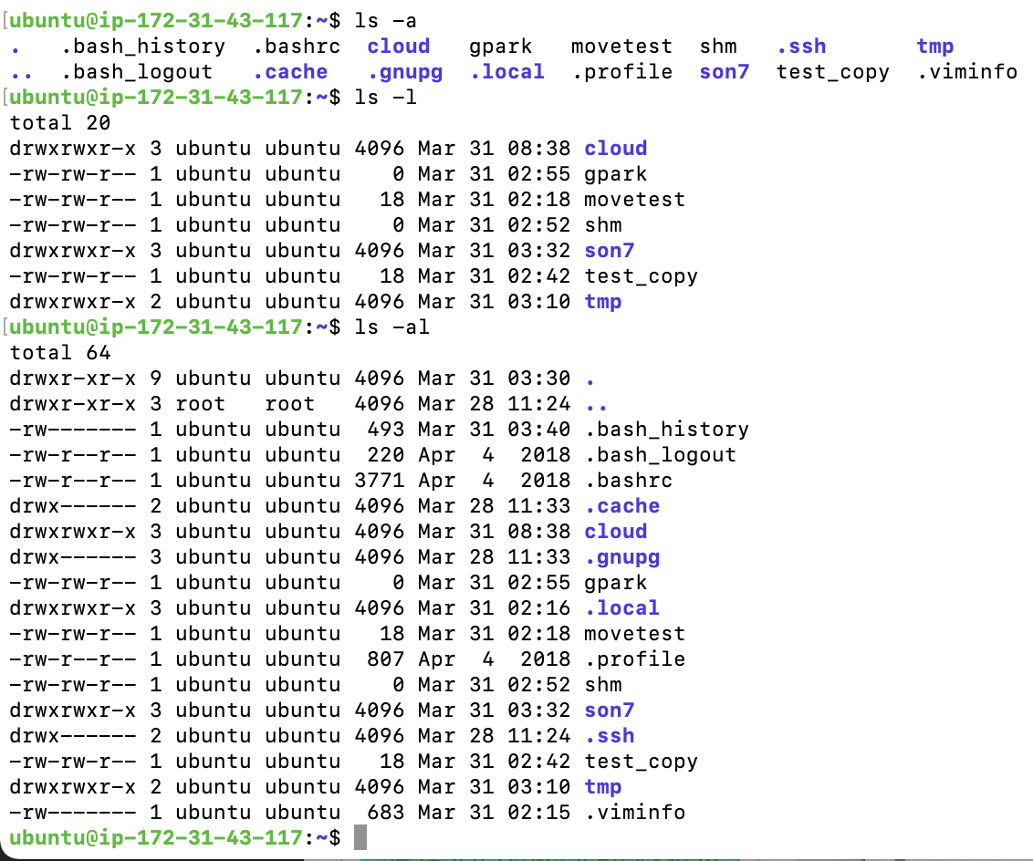 -al : 숨겨진 파일이나 디렉토리에 대한 자세한 내용이 출력