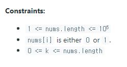 nums 배열이 주어지면 최대 k개의 0을 1로 뒤집을 수 있다고 하자.