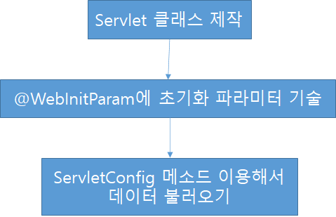특정 Servlet이 생성될 때 초기에 필요한 데이터들이 있다. 예를 들어 특정 경로 및 아이디 정보 등 이다. 이러한 데이터들을 초기화 파라미터라고 하며, web.xml에 기술하고 Servlet파일에서는 ServletConfig 클래스를 이용해서 접근(사용)한다.