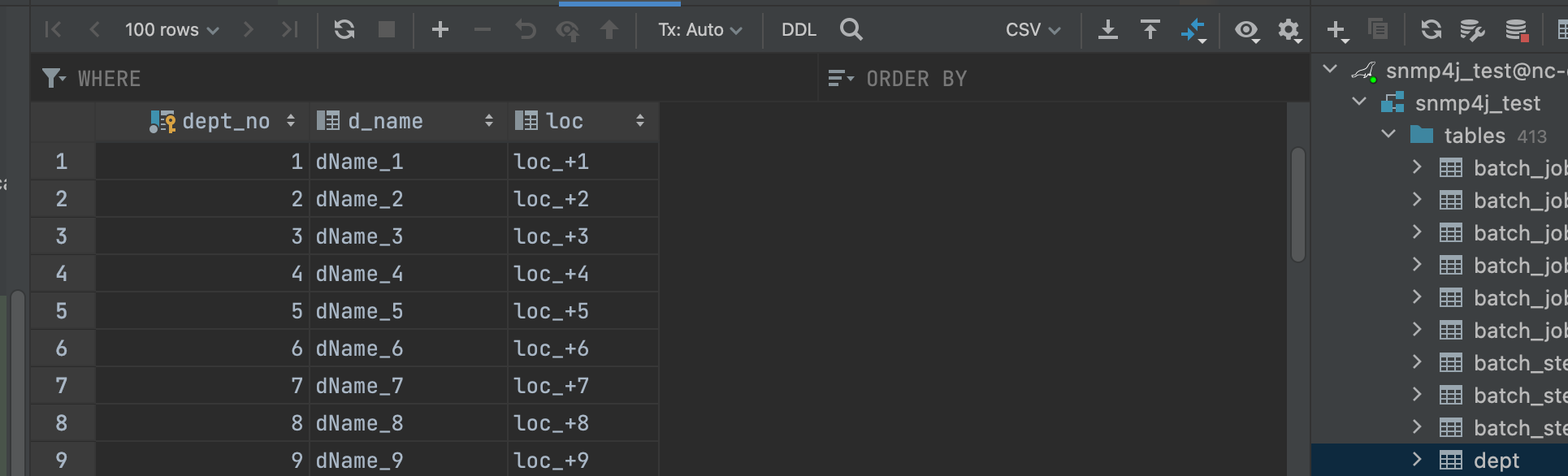 dept2 테이블이 생성되어 값이 들어가는 것 확인