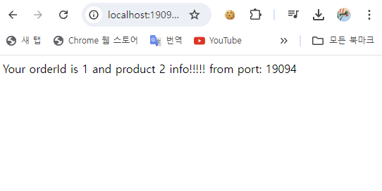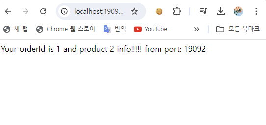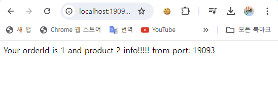 - [그림 10-1] - [그림 10-3]에서 볼 수 있듯이, http://localhost:19091/order/1에 반복적으로 요청하면 Round-Robbin Load Balancing Algorithm에 따라 매번 각기 다른 port 번호의 서비스로 요청된 것을 확인할 수 있다.
