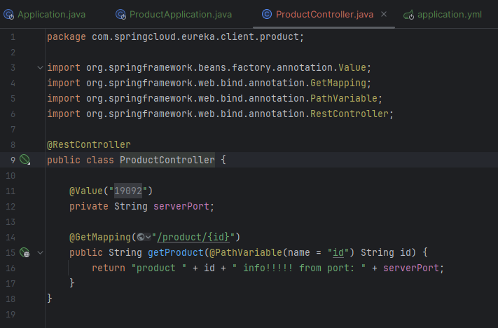 [그림 1] - Application (server), ProductApplication (product, port=19092) 실행