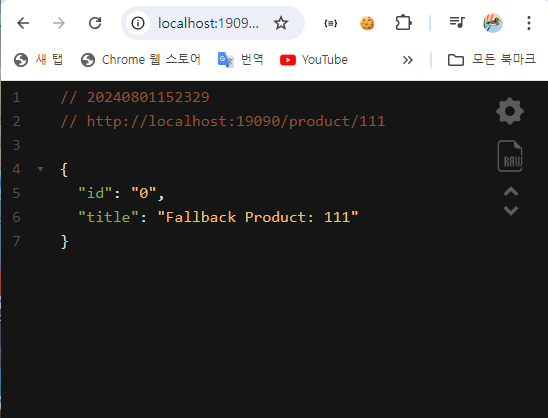 - productId 값이 "111"인 요청을 보냈을 때 Fallback Method가 호출되도록 하였다.
