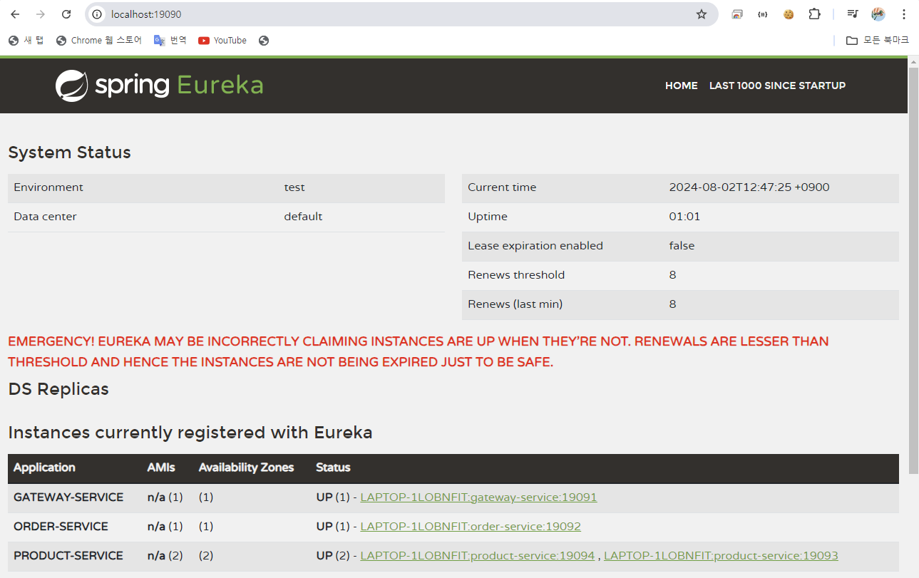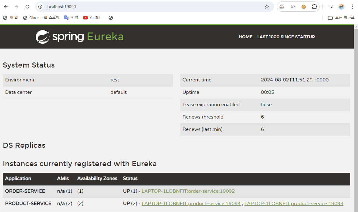 - Server, order-service와 두 개의 product-service를 실행하고 브라우저에서 'http://localhost:19090'에 요청하면 [그림 1]과 같은 페이지가 출력된다.