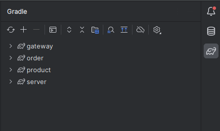 - [그림 2]와 같이 IntelliJ IDEA 상에서 server 애플리케이션의 Gradle에 gateway 프로젝트를 추가한다.