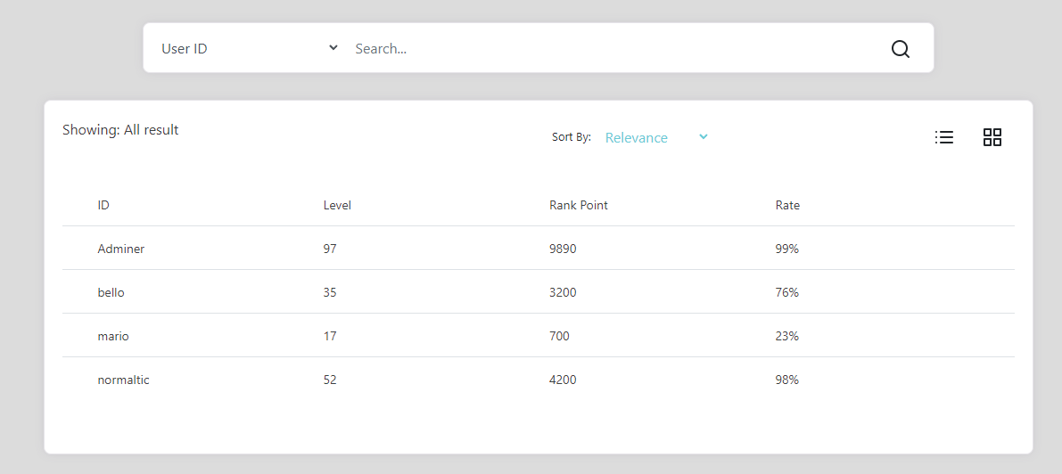 문제 페이지에 들어가니 테이블이 출력되어 있다.