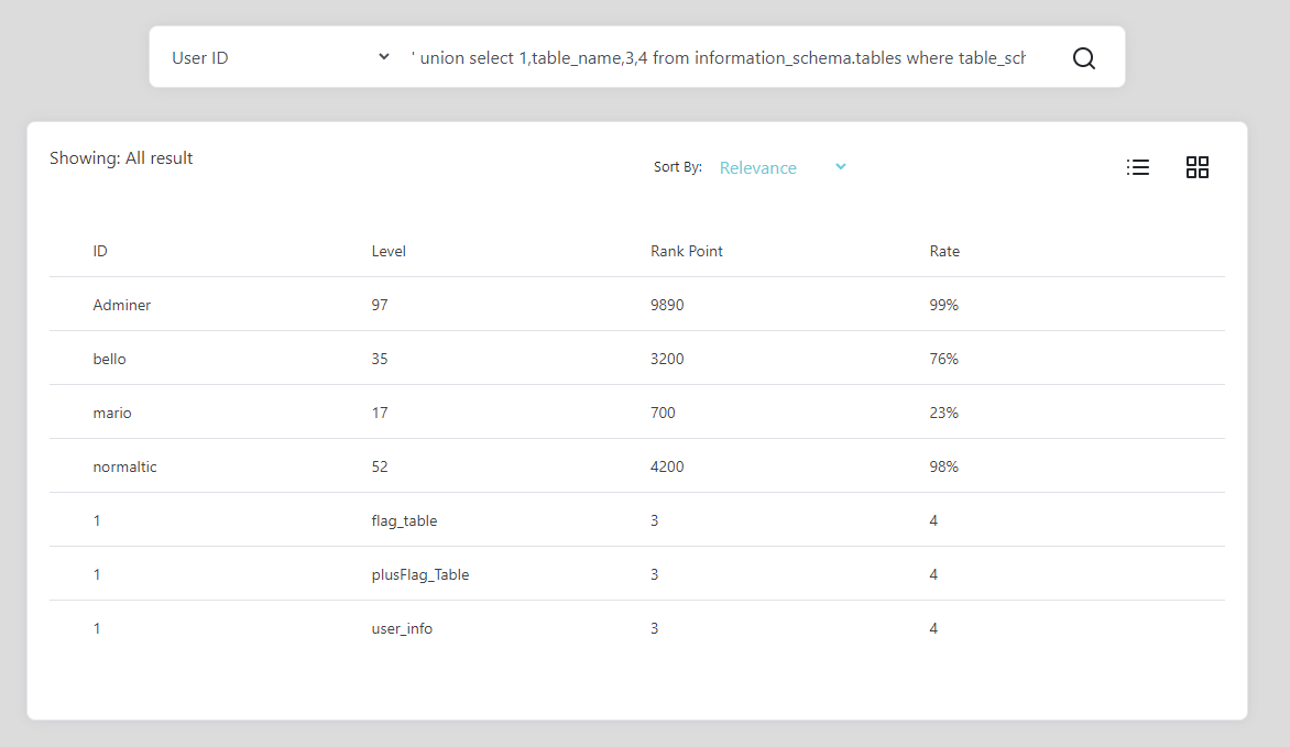 information_schema 이용하여 테이블 이름을 확인할 수 있다.