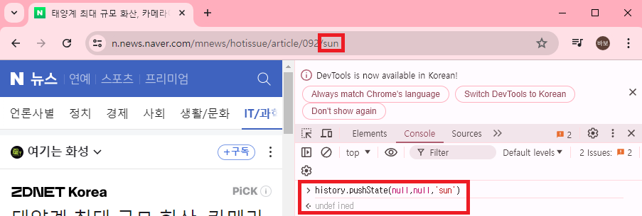 history.pushState : 페이지 갱신없이 주소만 변경