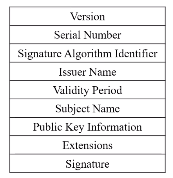 과정: 기관을 신뢰하는 사람은 인증서를 검증할 때, 기관의 Pk를 미리 가지고 있고, Pk를 통해 Signature을 검증했을 때, 서명이 valid 할 경우, 그것을 통해 Subject Name, Public Key Information에 들어있는게 맞구나 하고 사용.