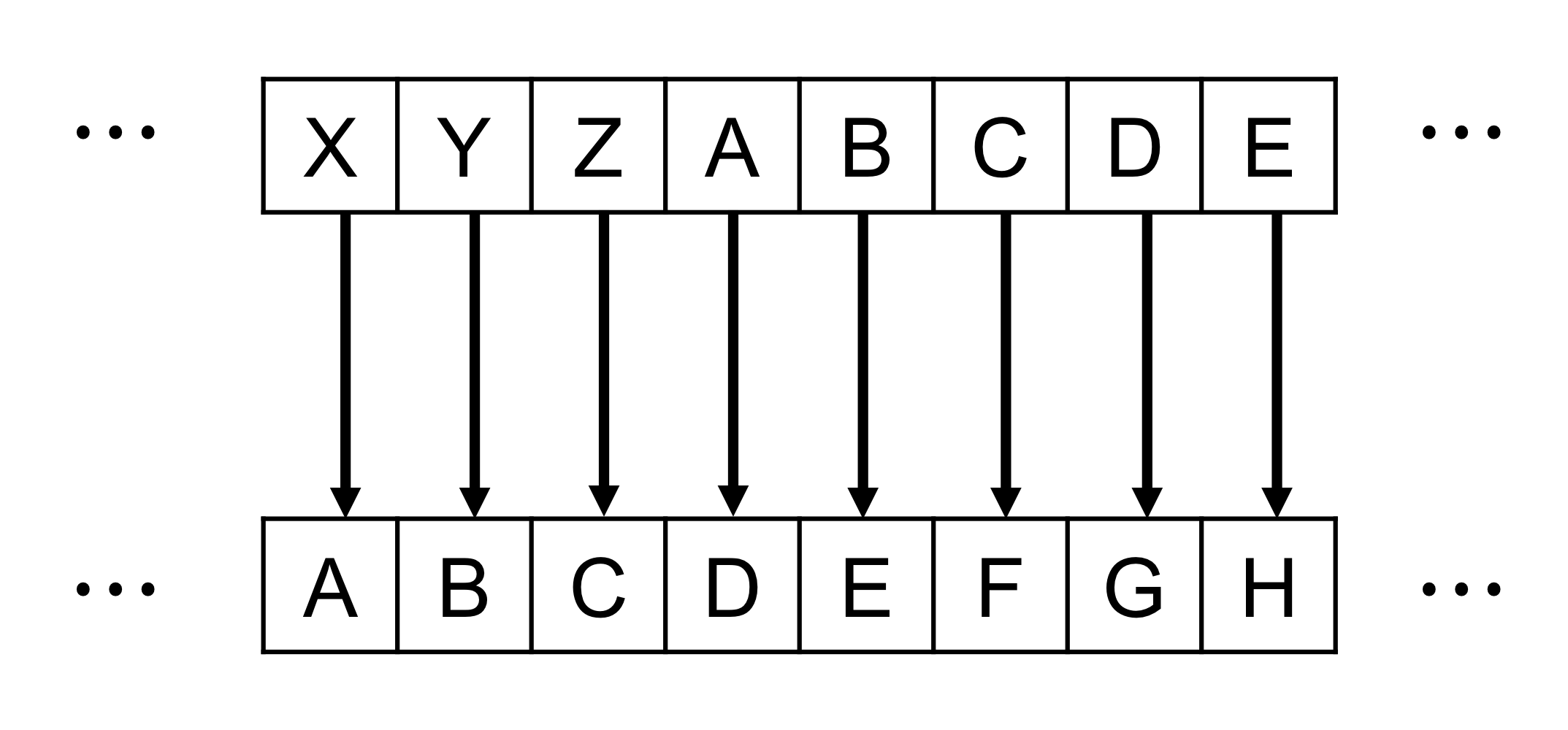 순환 구조: 알파벳의 끝(Z)를 넘어가면 다시 A로 돌아간다.