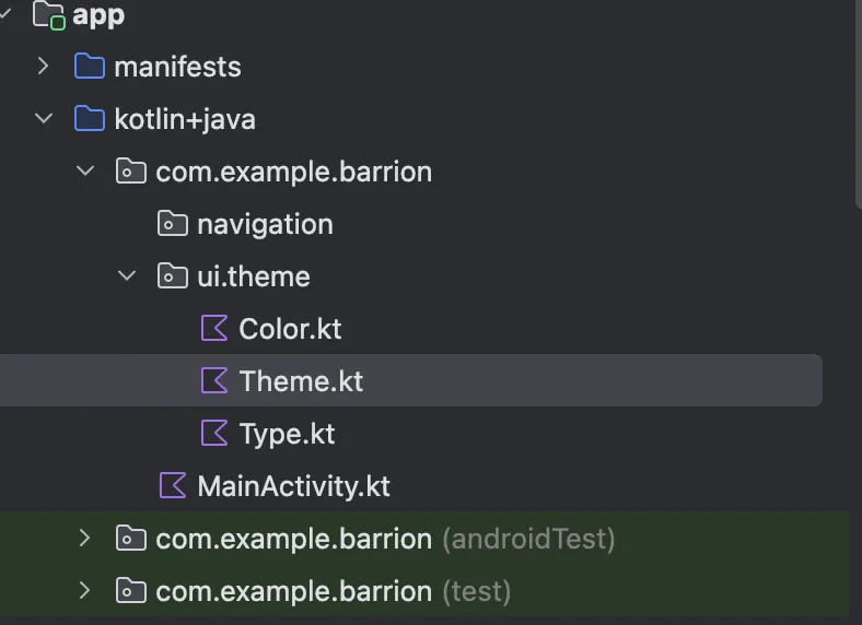 │ │ │ │ ├── Theme.kt // 테마 설정