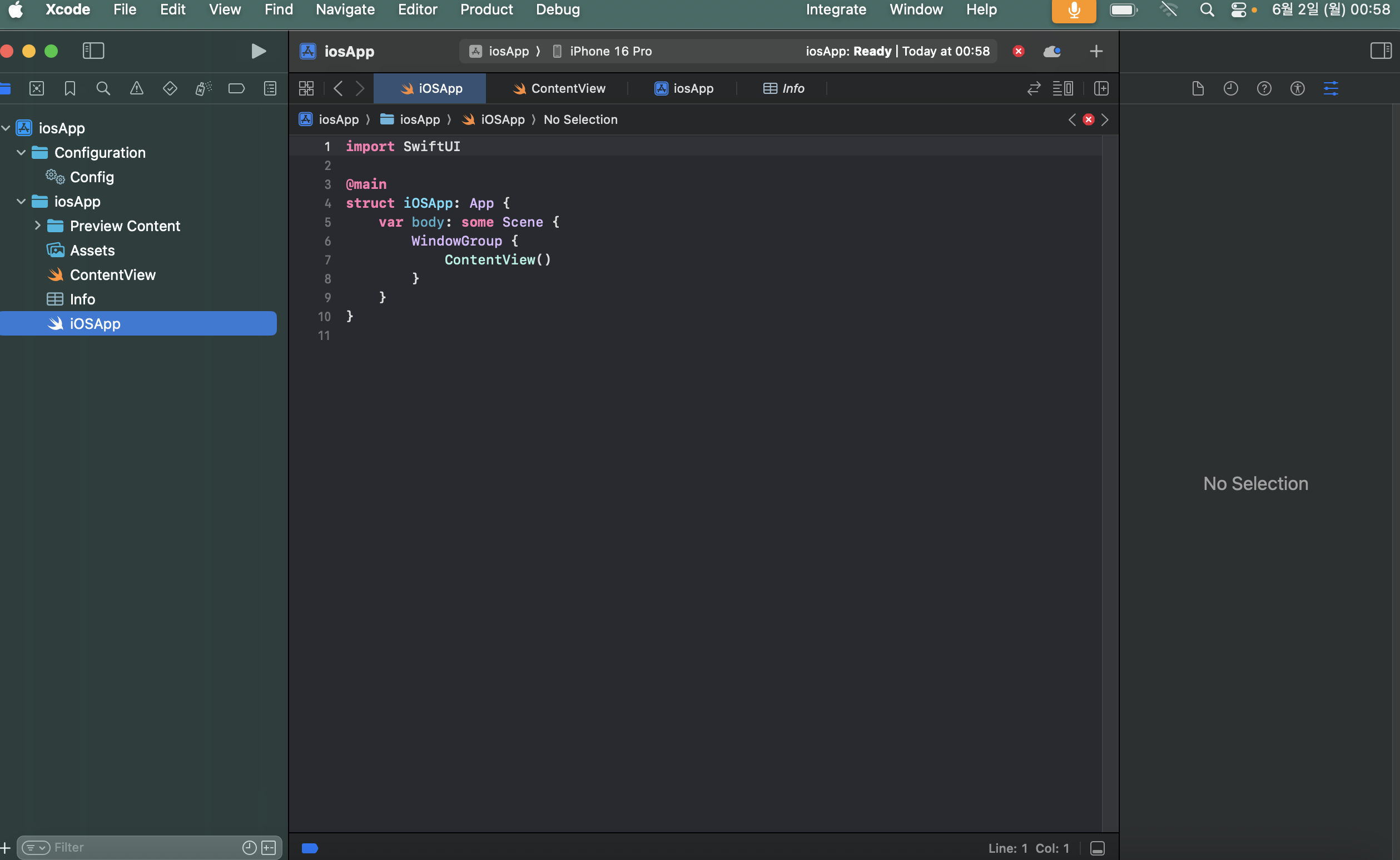 iOS 앱을 위한 이 진입점이 필요합니다. 프로젝트에 SwiftUI 코드를 추가해야 하는 곳이기도 합니다.