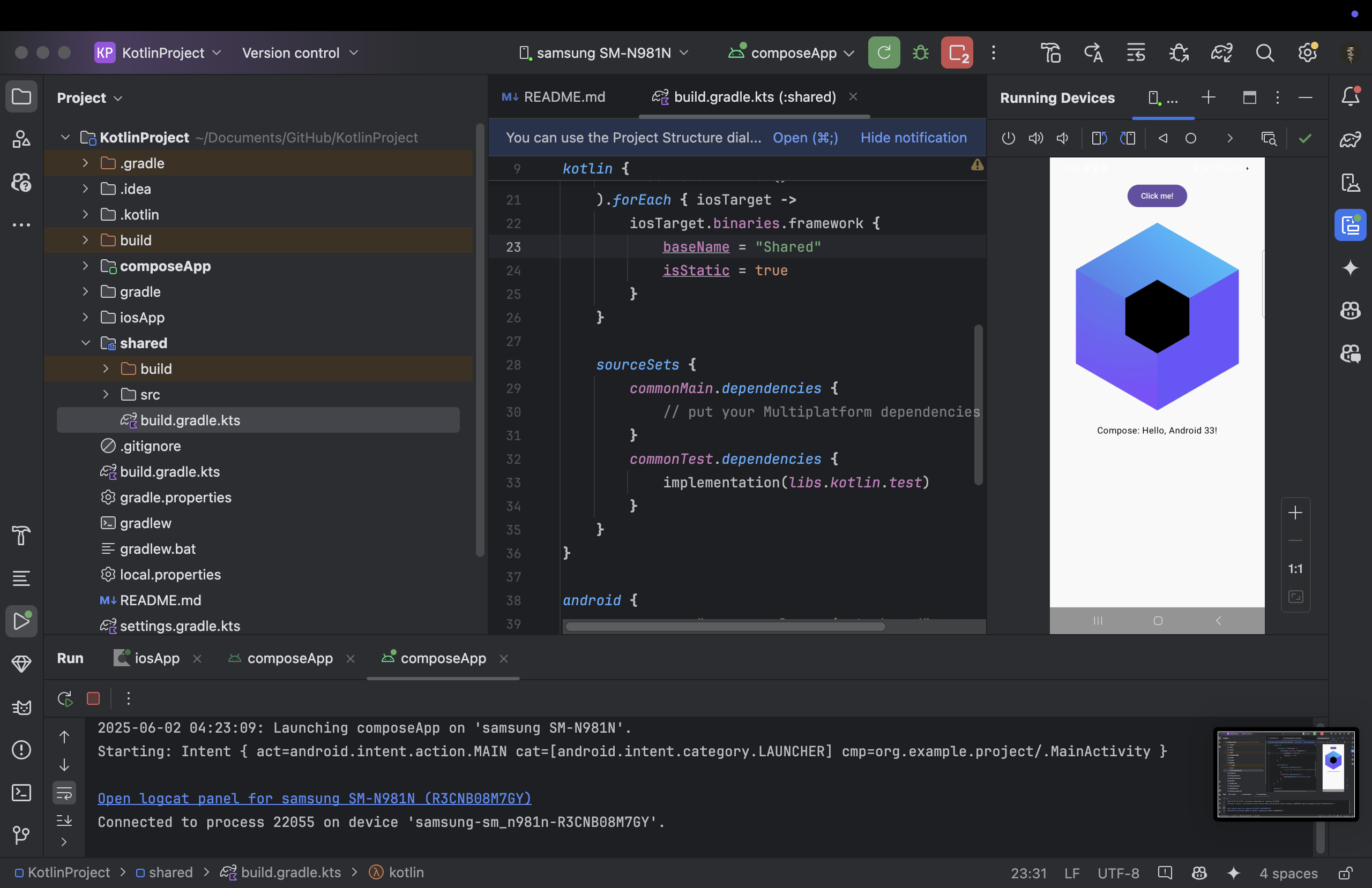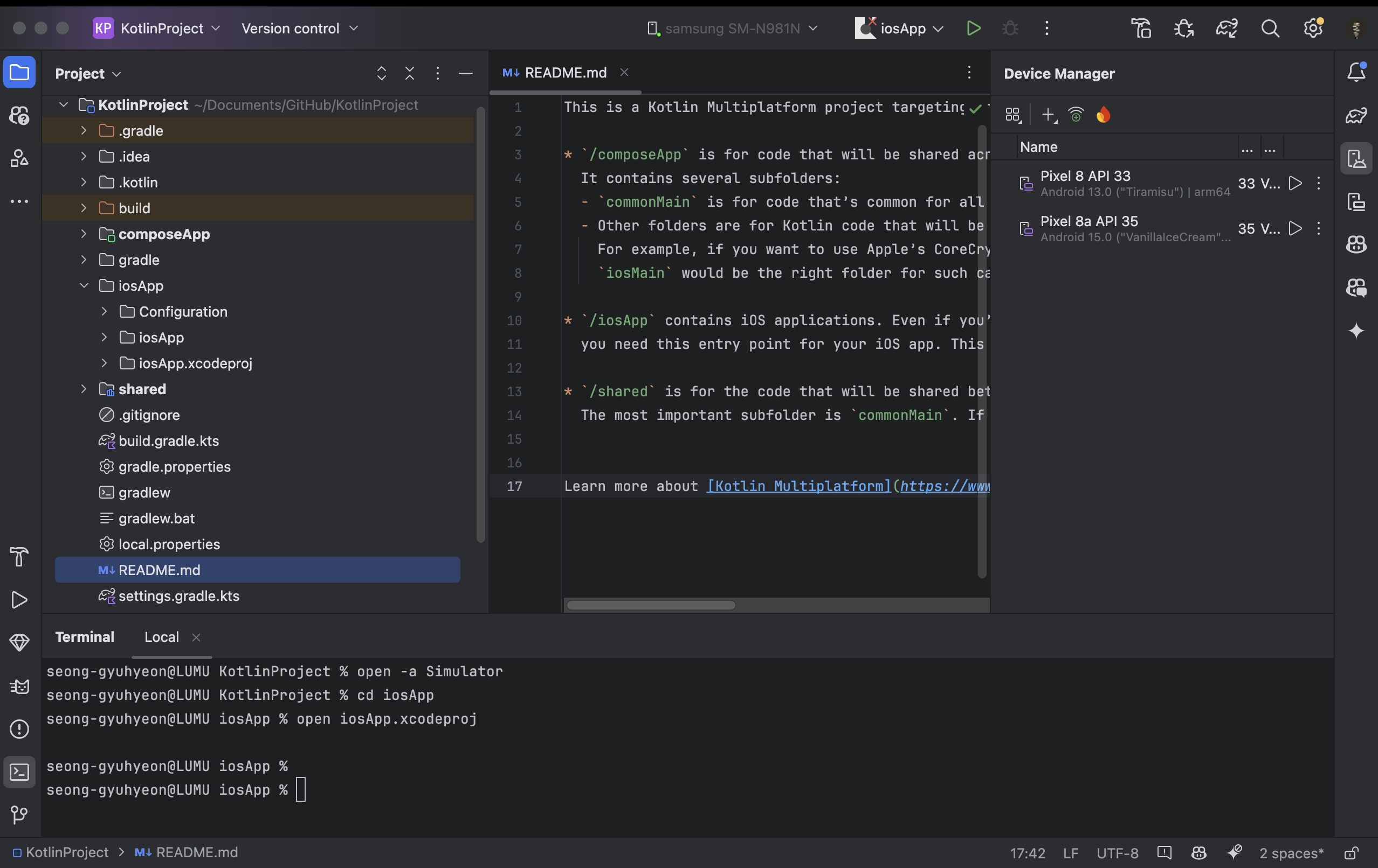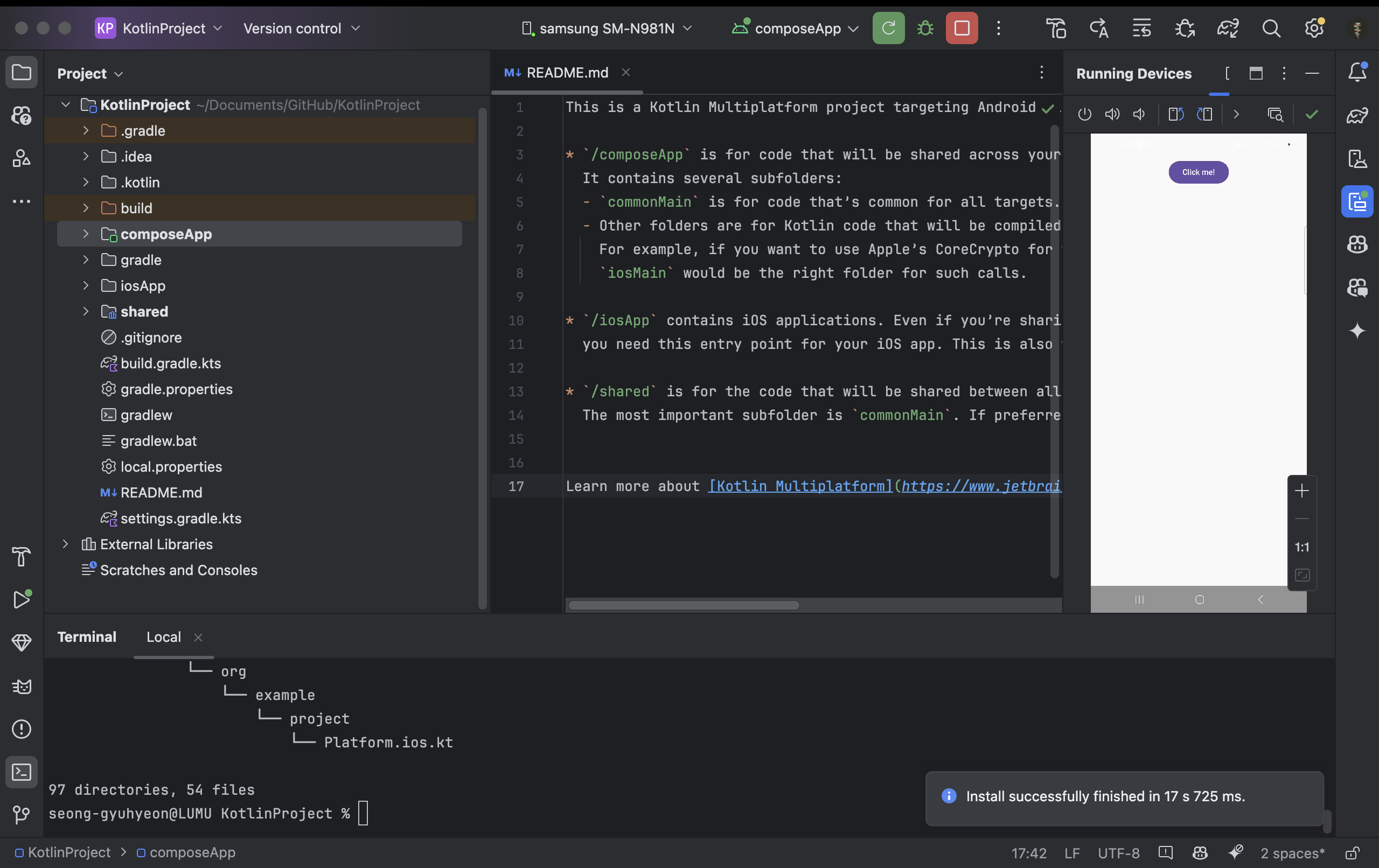 수동 작업 방법 : Kotlin Multiplatform quickstart