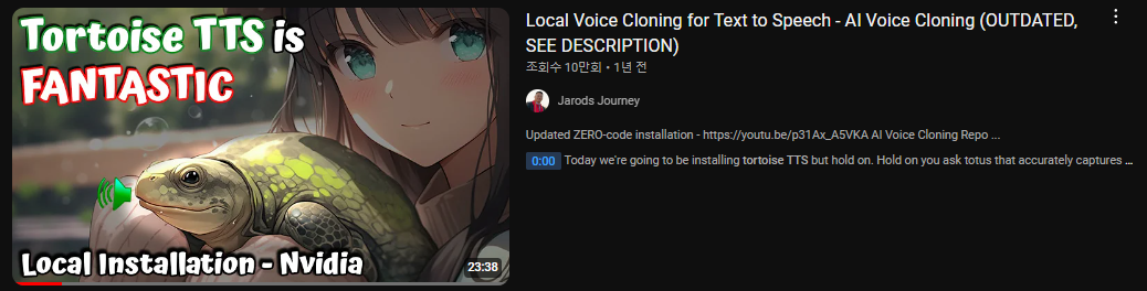검색을 해보자니 Tortoise TTS는 영어에 최적화되있어서 다른언어는 어색하다고한다.
